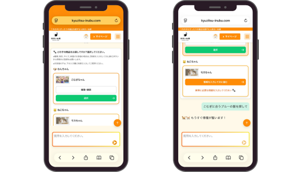 既に「休日いぬ部」に会員登録済みのユーザーは、マイページに登録されている愛犬・愛猫の情報をもとにAIが商品検索を開始するため、入力の手間を大幅に省き、より精度の高い「うちの子専用」の提案を瞬時に受けることができます。