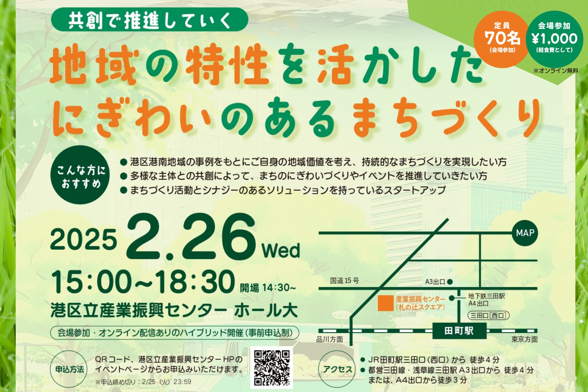 [2/26開催] 港区港南から未来のまちづくりを共に考えるイベント「共創で推進していく 地域の特性を活かしたにぎわいのあるまちづくり」リアル・オンラインのハイブリッド開催。