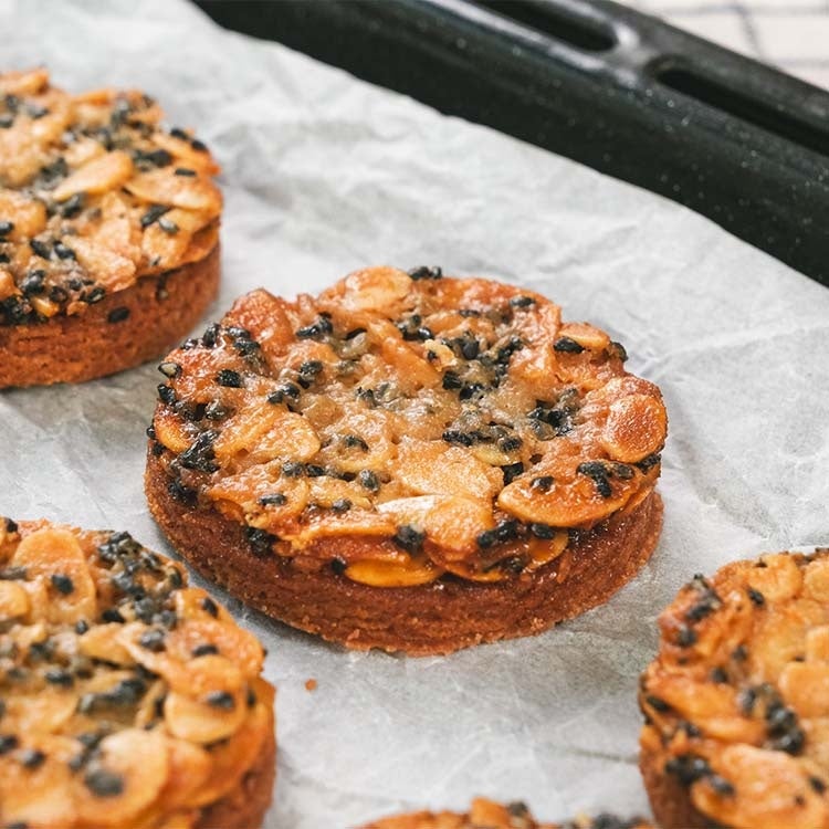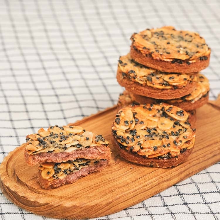 クッキー生地はサクッと軽やかな食感で、アーモンドスライスが重なったキャラメル部分はほどよい柔らかさ。硬すぎたり粘り気が強すぎたりすることのない、召し上がりやすい食べごたえが特徴です。