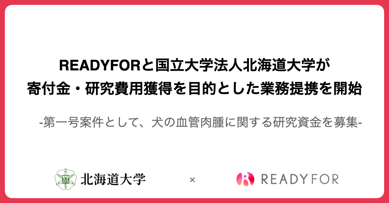 日本初・国内最大級のクラウドファンディングサービス「READYFOR」を運営するREADYFOR株式会社(本社:東京都千代田区、 代表:米良はるか)と国立大学法人北海道大学(所在地:北海道札幌市、総長:寳金清博)は業務提携を締結いたしました。
