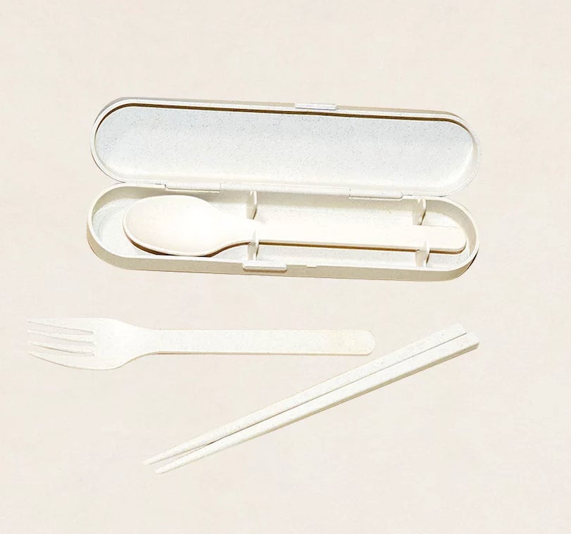 展示会当日は、このような当社サービスに関する詳細を記載した『ホテル・旅館向け総合カタログ』や、新製品14種を含む『エコなアメニティ・備品チラシ一式』、ロボットの活用シーンや契約プランを記載した『清掃ロボット紹介チラシ一式』など、多数パンフレットご用意しています。さらに、名刺を交換いただいた方には、もみ殻を40%使用して作られたロゴ入りカトラリーを配布予定です。