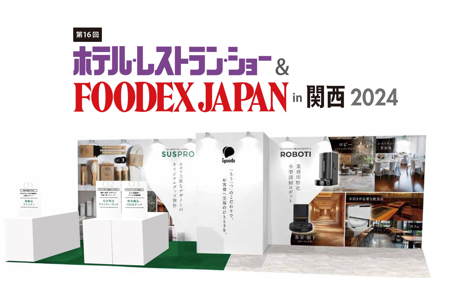 「第16回ホテル・レストラン・ショー&FOODEX JAPAN in 関西2024」は、大阪・関西万博を翌年に控える大阪で、ホテル・レストラン・ショー分野での新たなビジネスを創出する専門展です。当社は今回、ホテル・レストラン業界に役立つ、エコなアメニティや備品、オリジナルグッズ制作を行う「SUSPRO(サスプロ)」と業務用清掃ロボットを展開する「ROBOTI(ロボティ)」の2種ブランドを同時出展します。