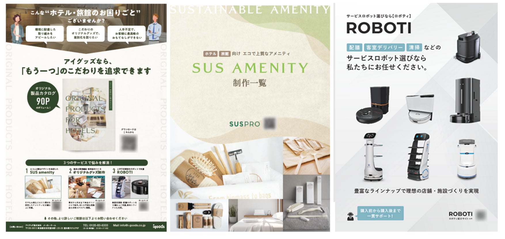 「アメニティ・ノベルティをエコなものへ差し替えたい」「人手不足でお客様にこだわりのサービスを提供できていない」「漠然と今の経営に不安を抱えている」など、「もう一つこだわった」ホテル・レストランづくりをご希望の方は、お気軽に当社ブースまで足をお運びください。