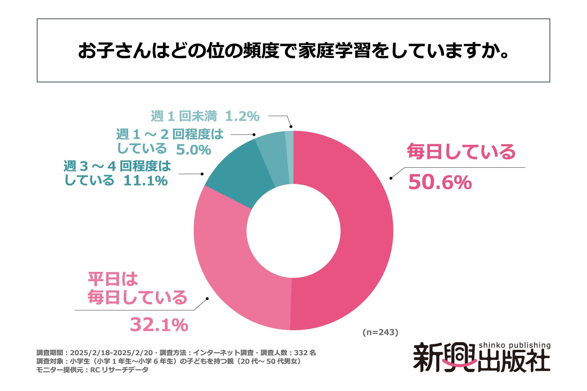 株式会社新興出版社啓林館(本社:大阪市天王寺区、代表取締役社長:佐藤 諭史)は、小学生(小学1年生~小学6年生)の子どもを持つ親を対象に「小学生の家庭学習」に関する実態調査を実施しました。この調査から、現代の小学生の家庭学習の実態などが明らかになりました。