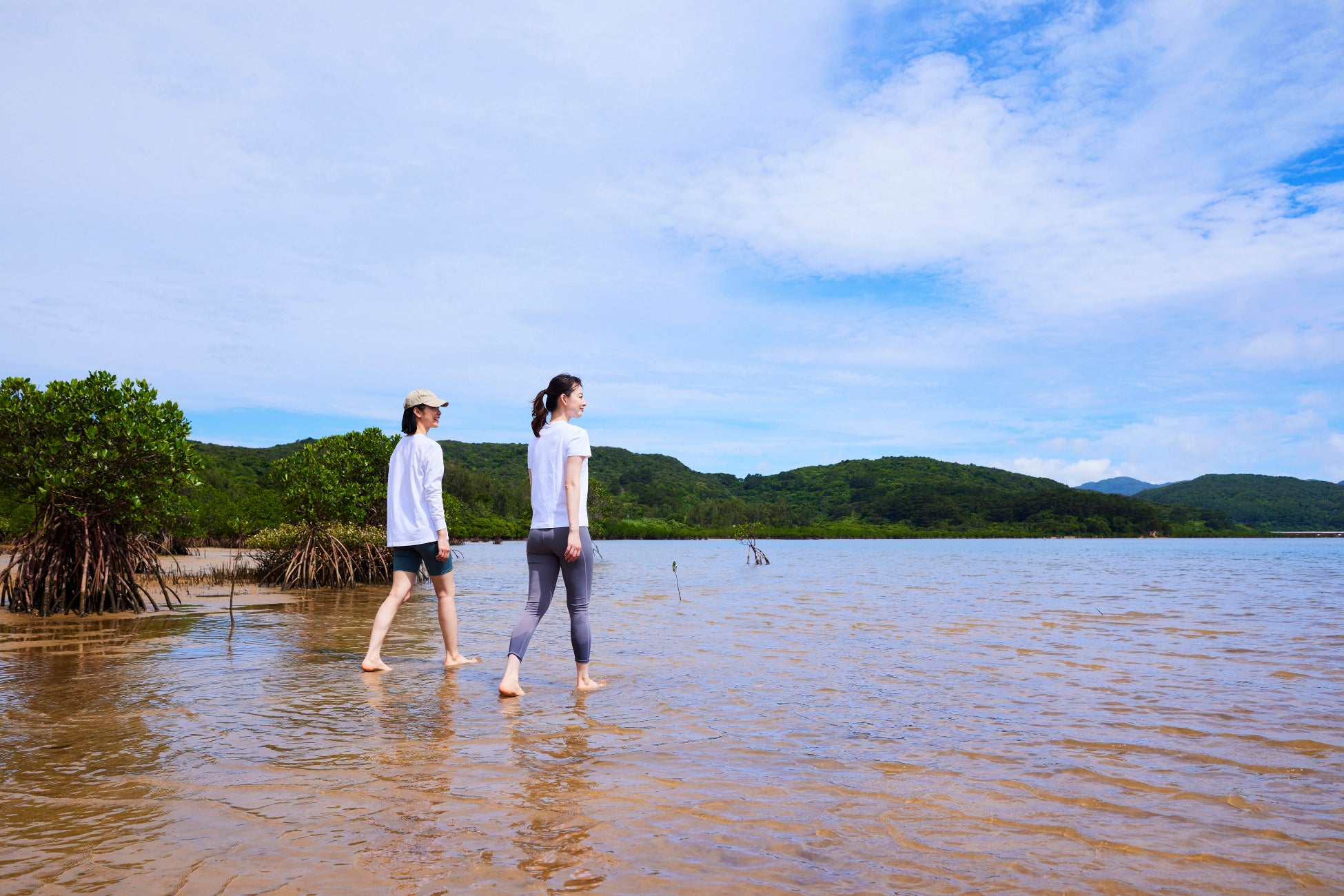 アーシングとは、裸足になって直接自然に触れる体験です。西表島の豊かな生態系を支えているマングローブが広がる干潟を、裸足になって歩くことで地面のエネルギーや大自然をより強く感じます。雄大な景色を楽しみながら、ゆっくりと流れる時間を満喫できます。