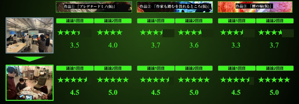 単に「好き・嫌い」で語り合うのではなく、これまでの議論やクリエイターへのインタビューを通して蓄積した具体的な「軸」を用いて、より深く建設的なディスカッションを目指します。これを取り入れた直近の第3回編集会議では、1回目よりも議論の満足度が高くなったことを確認できました。更に今回は、過去の議論データを読み込ませたAI「ストーリア」もサポート役として活用し、参加者同士の対話と合意形成をツールの力でサポートする、かつてない編集会議を体験いただけます。