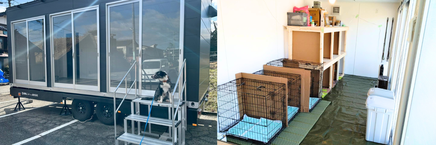 ピースワンコ・ジャパンが珠洲市飯田公民館のトレーラーハウスにて、被災者のためにペット一時預かり支援を開始しました!