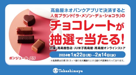 「高島屋ネオバンクアプリで決済すると〈ラ・メゾン・デュ・ショコラ〉のチョコレートが抽選で当たる!キャンペーン」実施のお知らせ