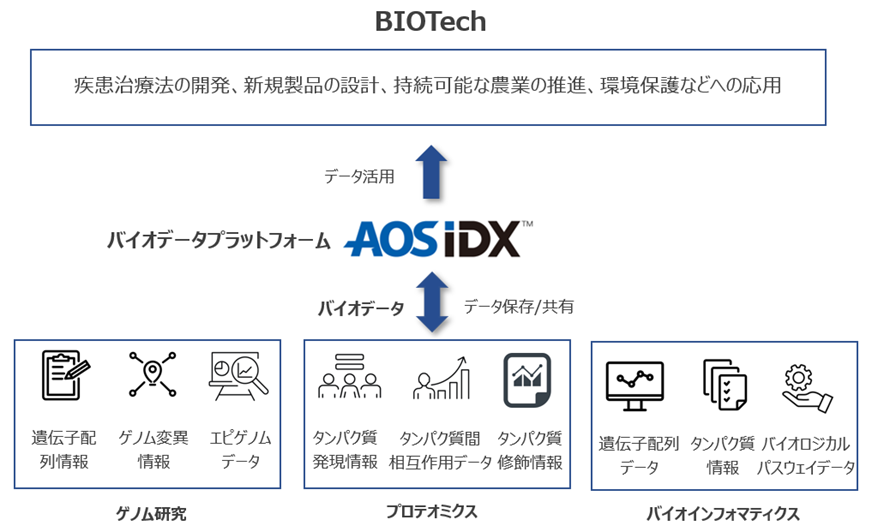 クラウドデータ、システムデータ、リーガルデータ、AIデータなどのデータアセットマネジメント事業を展開するAOSデータ株式会社(本社:東京都港区、代表取締役社長 春山 洋 以下 AOS データ社)は、バイオテックにおいて、遺伝子工学、生物工学、生物化学、バイオインフォマティクスなどの分野からの知識と手法を応用し、生物の特性や能力を活用することで新たな製品やサービスの創造する持続可能な社会の実現や医療の進歩、環境保護への貢献するためのバイオデータの保存管理やデータのリスク管理までデータを総合的にマネジメントし、AIによるデータ分析や活用につなげることができるデータマネジメント製品「バイオデータプラットフォームAOS IDX」(https://AOSIDX.jp/)のInside実装サービスを、2023年7月25日より販売開始することをお知らせします。