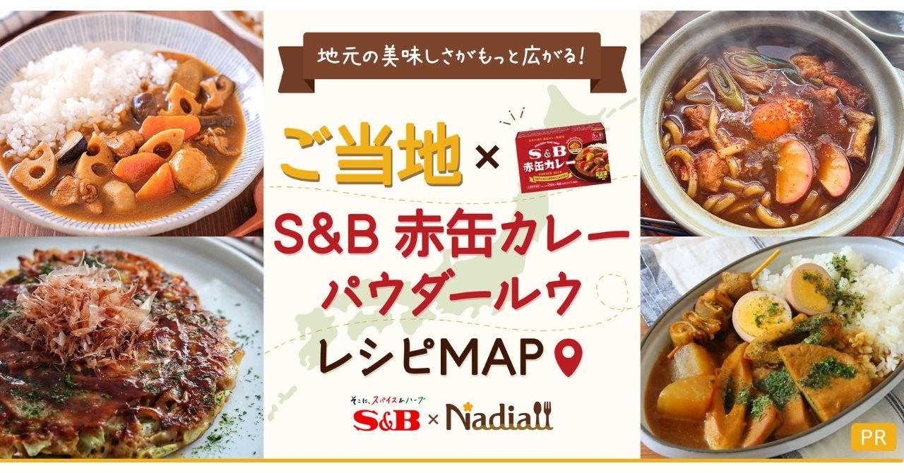 Nadia株式会社(東京都港区/代表取締役社長 葛城嘉紀)とエスビー食品株式会社( 東京都中央区/代表取締役社長 池村 和也)がタイアップし、特別企画ページ【ご当地×S&B 赤缶カレーパウダールウ レシピMAP】を公開いたしました。