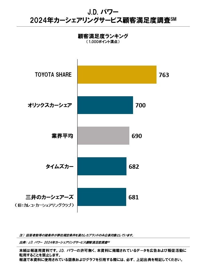 J.D. パワー 2024年カーシェアリングサービス顧客満足度No.1を発表