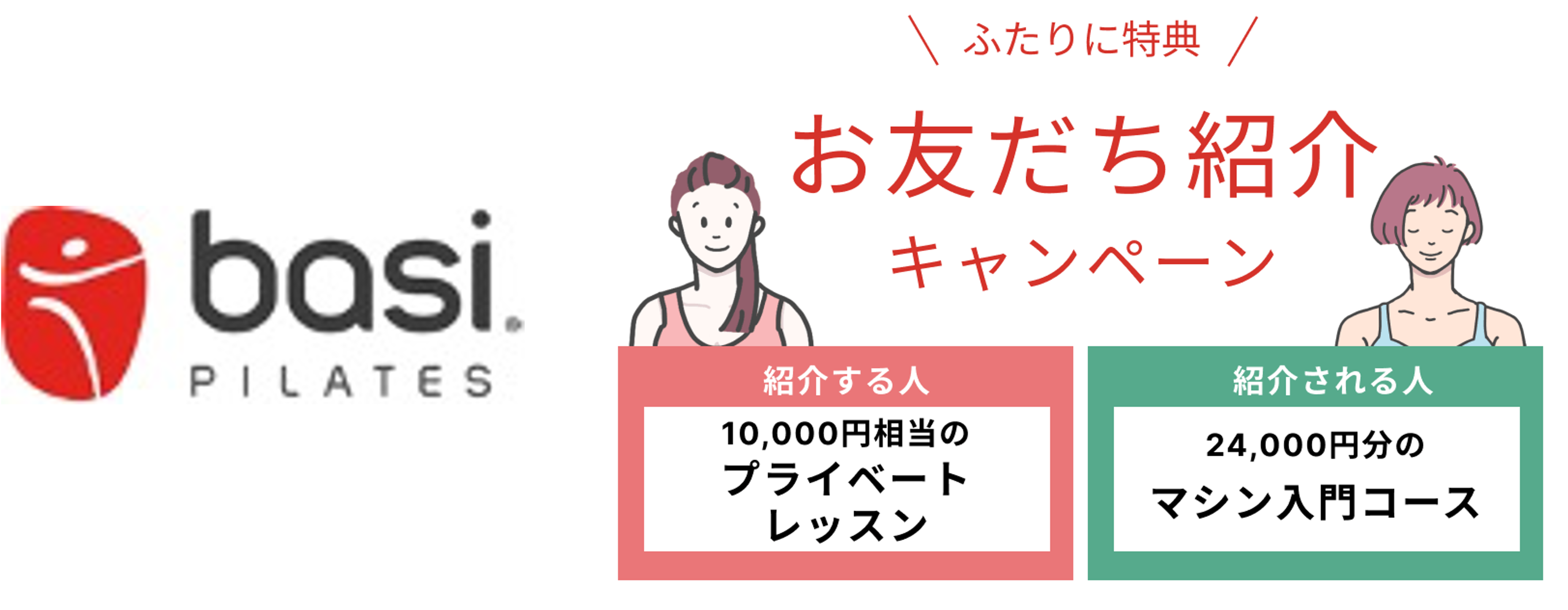 ・紹介されたお友だちには、BASI ピラティスマシン入門コース24,000円分をプレゼントいたします。