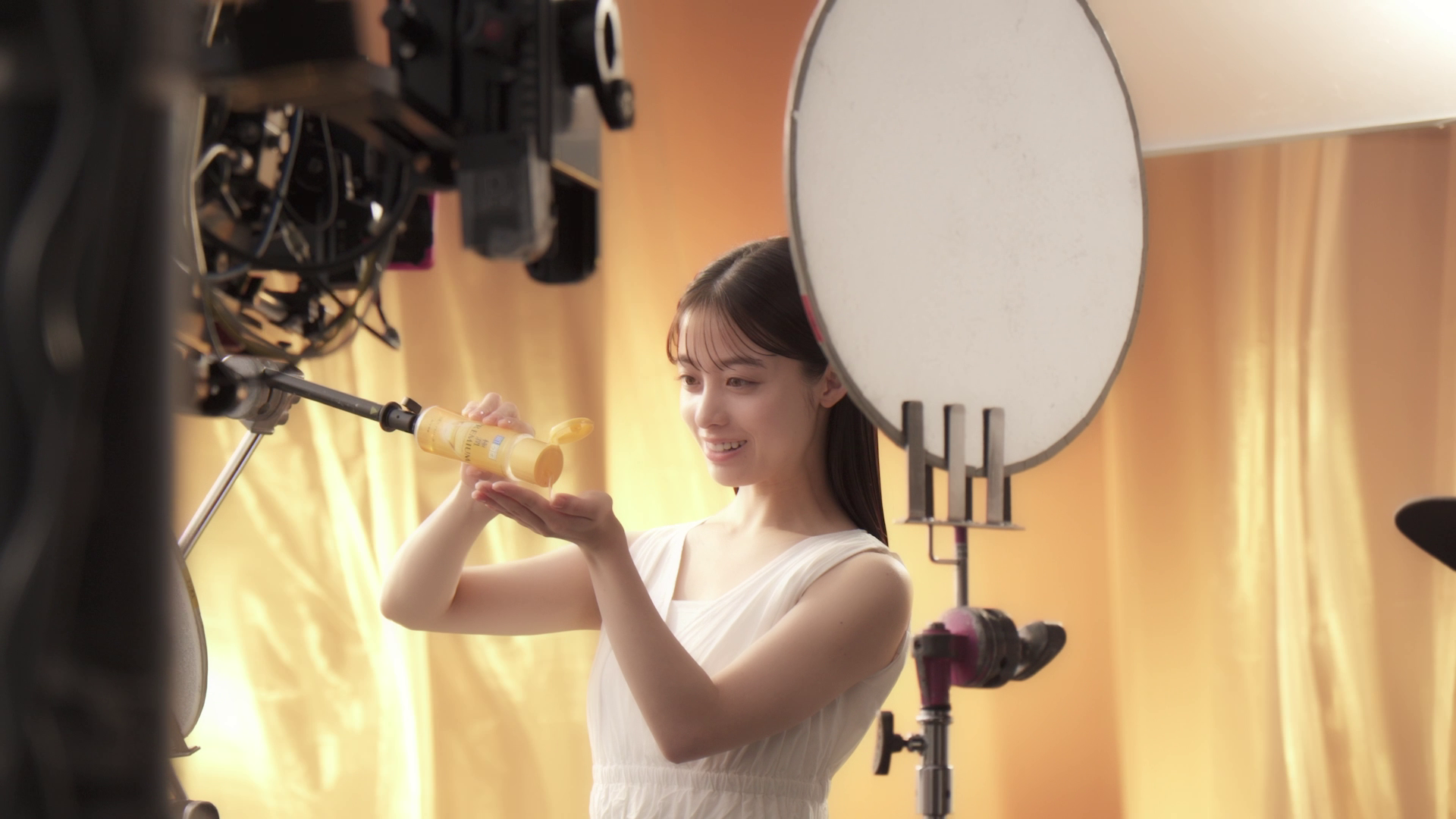 久しぶりにこういうCM広告の撮影をさせていただいて、すごく楽しかったですね。今回パッケージも新たに高級感が増して、プレミアムな雰囲気や、しっとり感というか、ザ・ビューティーみたいなものを、角度など研究しながらの撮影だったので、繋がったものを見るのがすごく楽しみです。