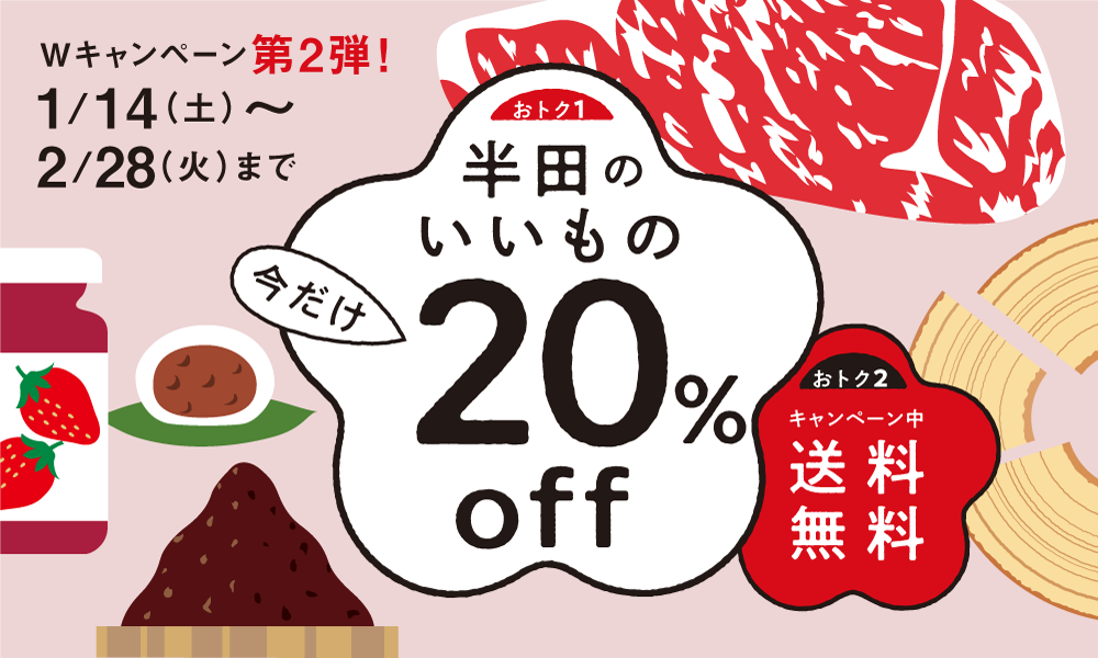 大好評キャンペーン再び開催!半田のいいもの全品20%OFF&送料無料でお買い物