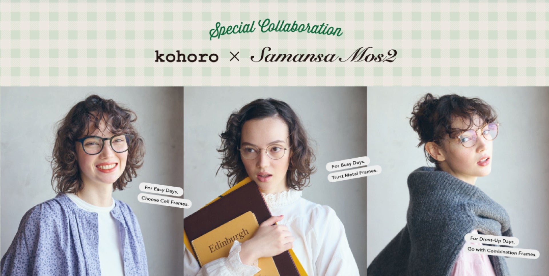 ふんわりと穏やかなサマンサ モスモスの優しい世界観を、細部にまでこだわった素材と色使いで表現。かけるだけで心がほっと安らぐような、心地よいコラボレーションメガネが誕生しました。