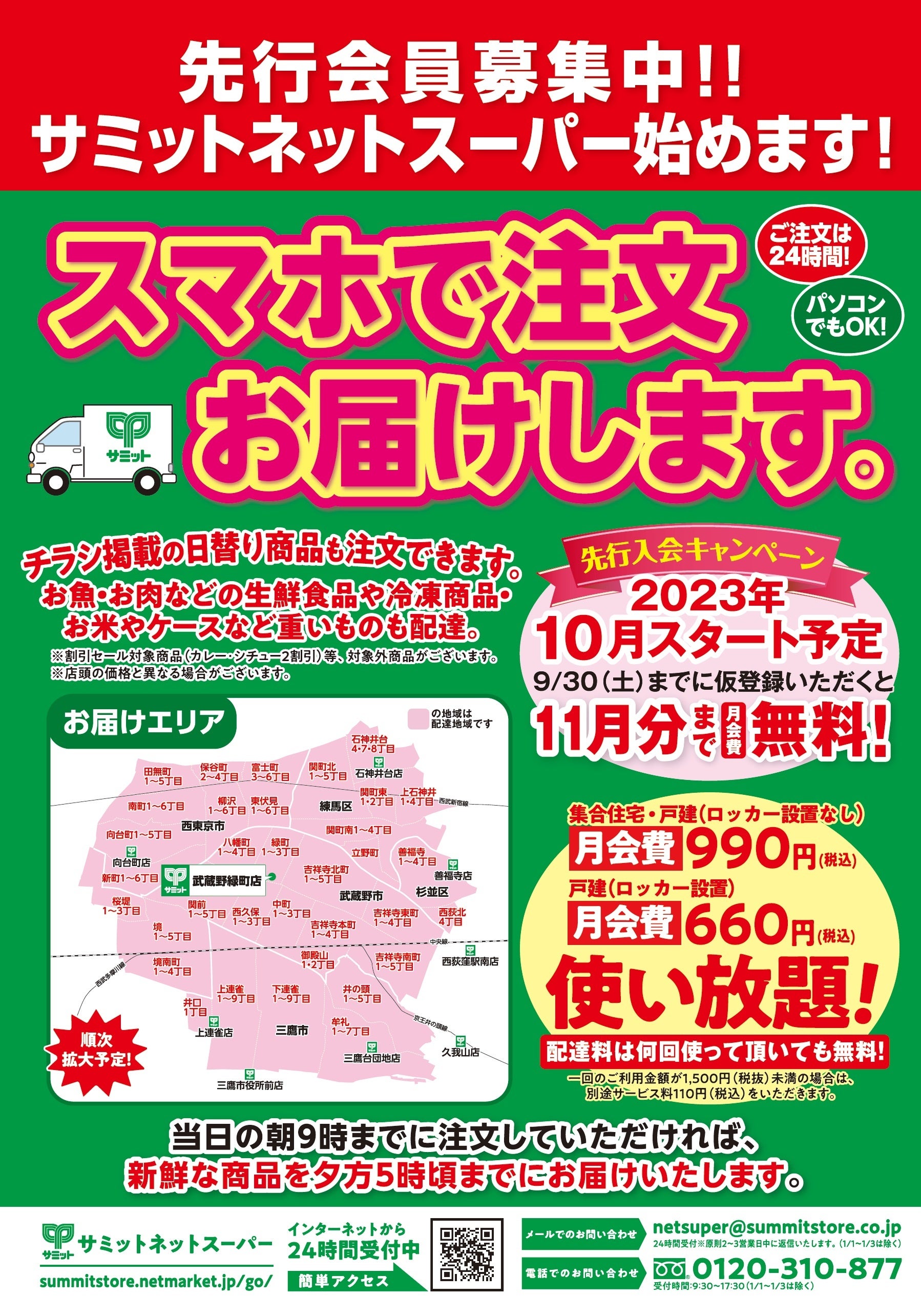「サミット」のお店からお届けします!「武蔵野緑町店」にてサミットネットスーパー開始先行会員募集中