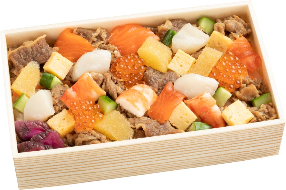 一つ星レストラン「sio」のオーナーシェフ鳥羽周作氏と共同制作した「すき焼き海鮮しゃり弁」は、“冷めてもおいしい”新ジャンルのテイクアウト限定商品。甘じょっぱいすき焼きに、ほどよい甘みのやさしいしゃり、自慢の海鮮を贅沢に散りばめました。