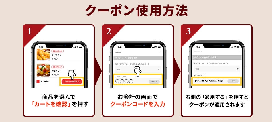 ■概要:出前館のご利用が初めての方限定で、スシローがご提供する商品を税込2,000円以上ご注文の上でクーポンコードをご入力いただくと、送料無料に加え、ご利用金額から1,500円割引いたします。またご新規の方以外も、税込800円以上のご注文の上でクーポンコードをご入力いただくと、送料無料に加え100円割引いたします。