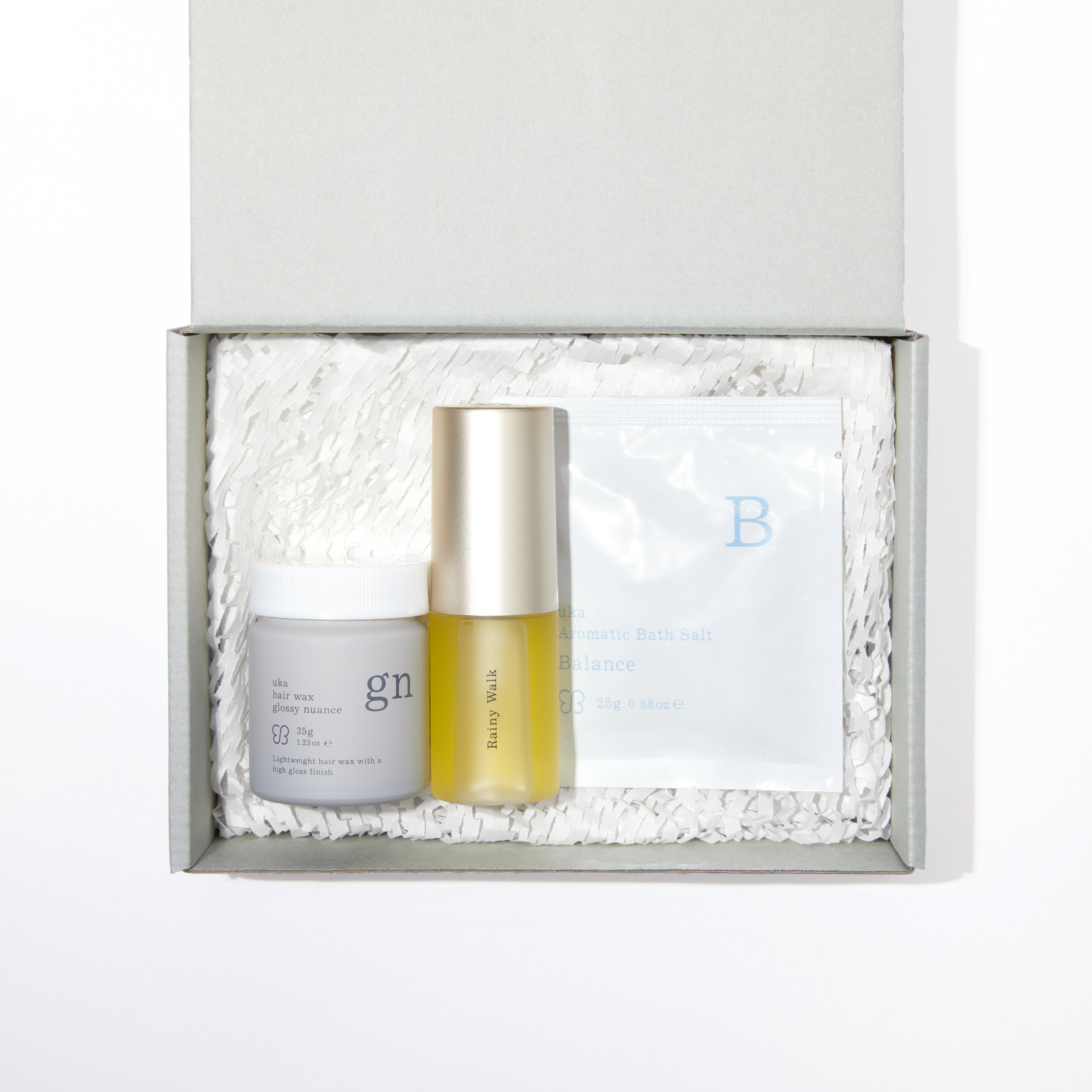 各セットにつきuka アロマティックバスソルト1点がついてきます。