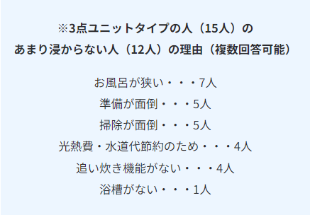 特にバストイレ・洗面台が全て設置されている3点ユニットは1割未満という数値になりました。