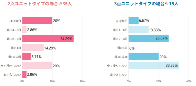浸かる頻度に関しては、セパレートタイプか否かで大きく差が出ました。