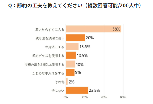 節約の工夫で最も多かったのが「沸いたらすぐに入る」