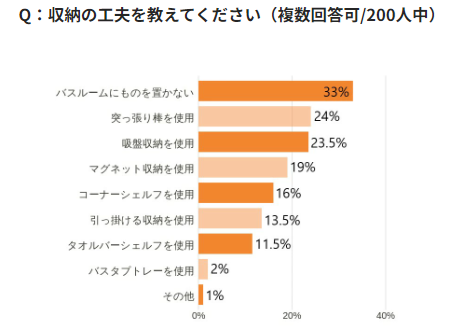 収納の工夫としては「バスルームにものを置かない」という意見がトップに。