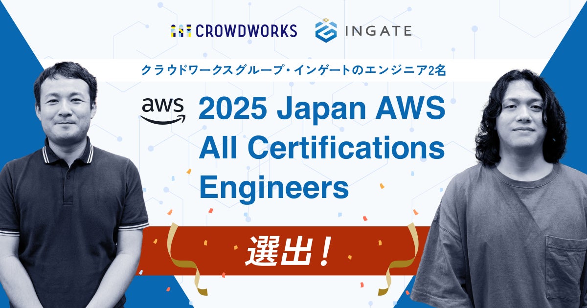 フリーランス業界最大級プラットフォーム(登録ワーカー700万人・登録企業100万社)を基盤に、IT人材&DXコンサルティングサービスを提供する株式会社クラウドワークス(本社:東京都渋谷区 代表取締役社長 兼 CEO:吉田 浩一郎 以下「当社」)は、当社グループ会社であり、ITソリューションを活用して企業のDXを支援する株式会社インゲート(本社:東京都港区 代表取締役:高橋 直道 以下「インゲート」)に所属するエンジニアメンバー2名が、アマゾン ウェブ サービス ジャパン合同会社(以下「AWSジャパン」)AWS 認定資格を全て保持するAWSに精通したエンジニアを対象とした表彰プログラム「2025 Japan AWS All Certifications Engineers」に選出されたことをお知らせいたします。