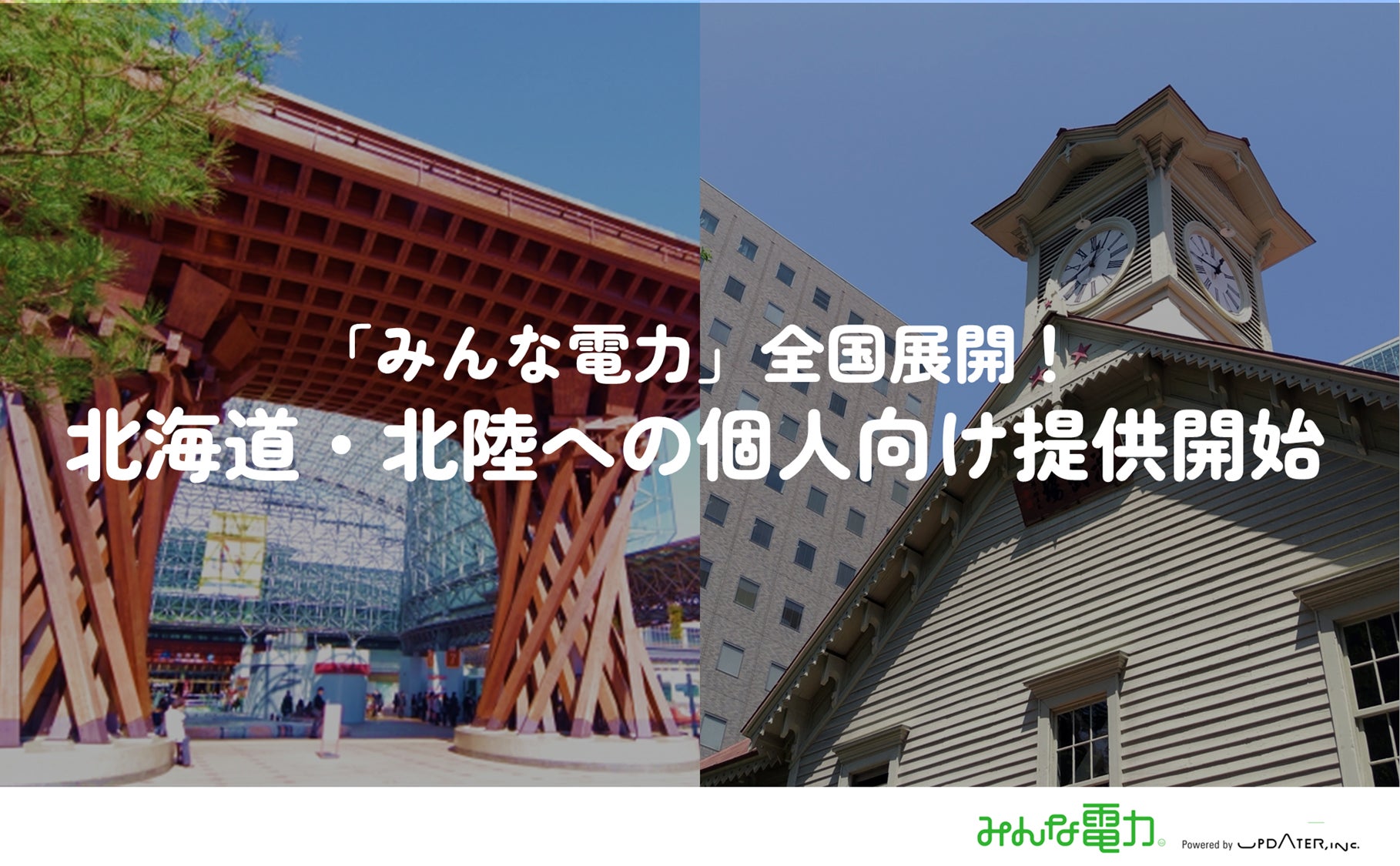 社会課題をユニークな発想で解決する企業、株式会社UPDATER(所在地:東京都世田谷区、代表取締役:大石英司)は、再エネ電力小売サービス「みんな電力」の提供エリアを、2025年11月1日より北海道および北陸エリアに拡大します。