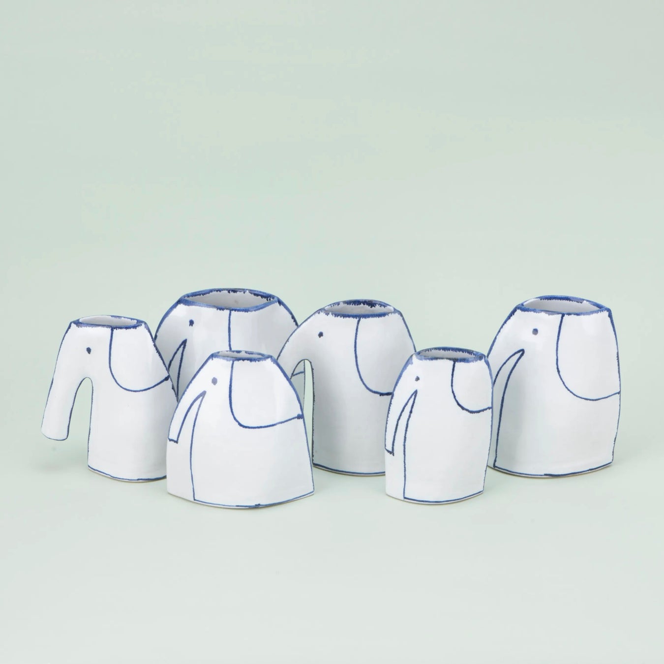 ある日偶然に、インスタグラムで象の画像を見たマリアンヌは、「あんなに大きな体で、あんなに大きな鼻をして、どうやって生き残ってきたんでしょ。私なら絶対、チーターやトラに生まれたい。象はゴメンだわ」と思ったそう。けれど象は自然の中でちゃんと生き残っていて、あくせくせず、私たちより平和そうに見える。そのことが、彼女の象への興味を掻き立てます。象は不器用だけど、面倒見がよくて情にもろいらしい。そんな噂も気に入りました。そして、シンプルで安定した象の形は、ひじょうに花瓶向きであることにも気づきました。これが決め手となって、いつもと違うものが作りたくなっていた彼女は、象の花瓶を作ることに決めたのです。