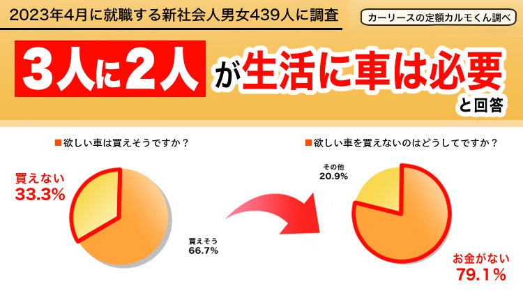 - 車を必要とする新社会人の約3割が「車を買えない」と回答。理由は「お金がないから」
