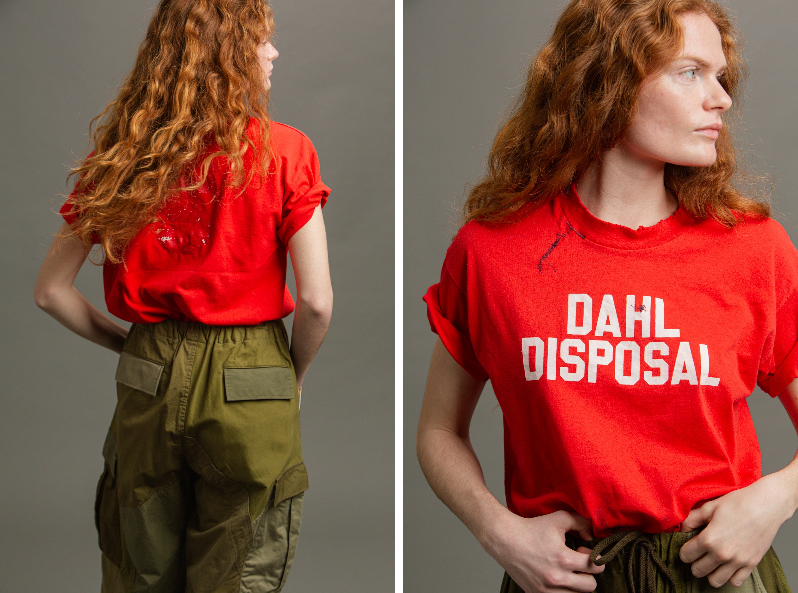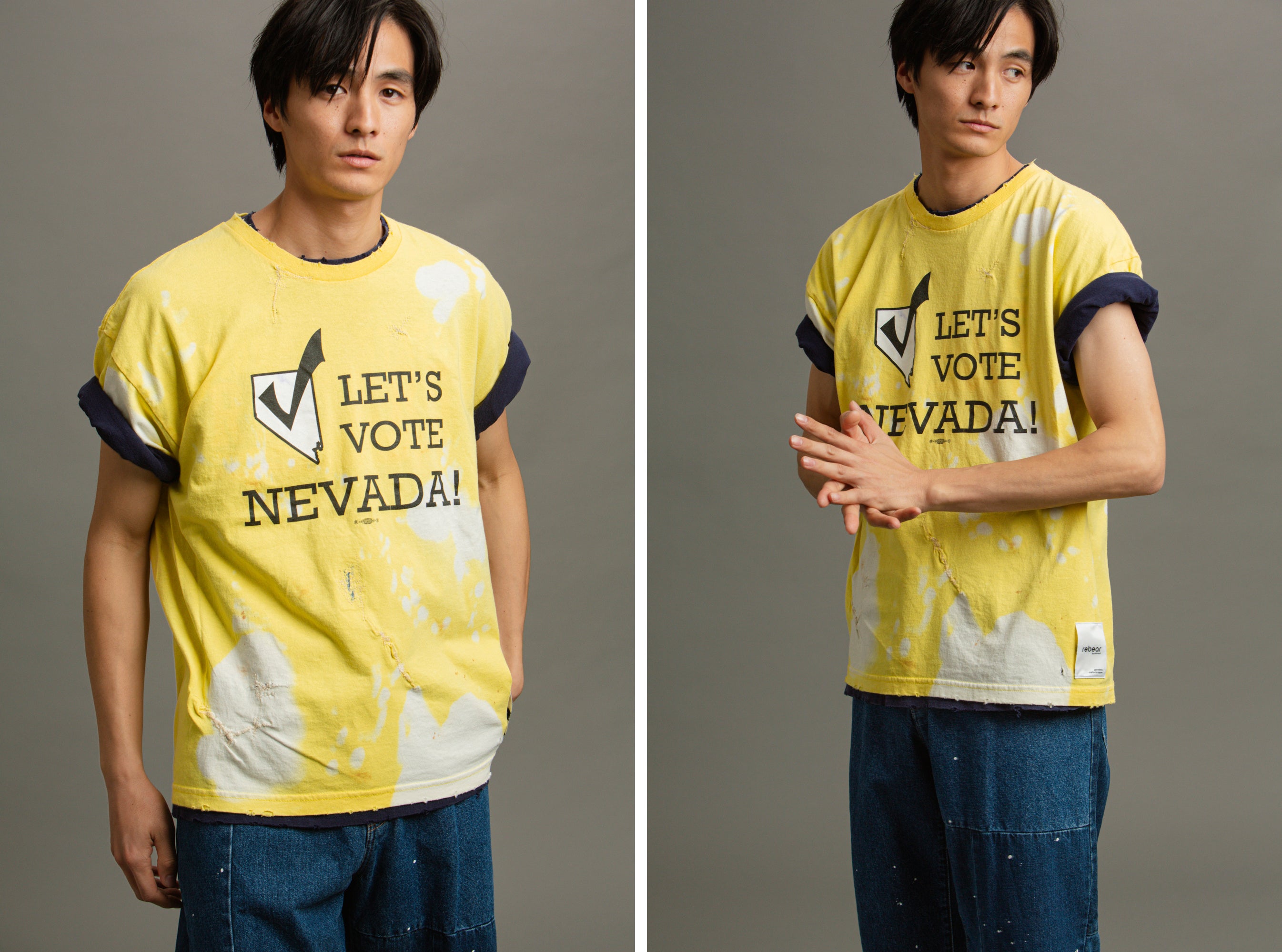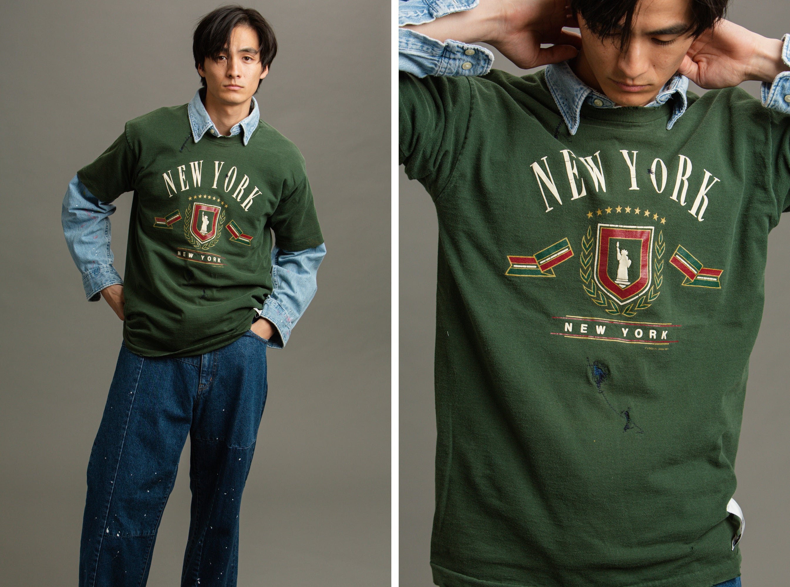 サスティナビリティーの観点から、自分たちの生み出したものを再び消費してもらえるものに生まれ変わらせるために、製品や古着及び使用残生地を使い再び自分たちの手でリメイク製作を行っています。