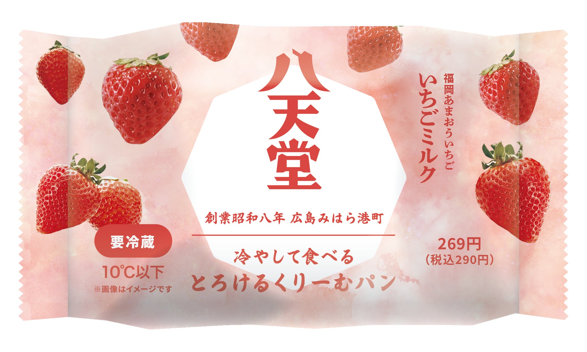 株式会社八天堂(本社:広島県三原市、代表取締役:森光孝雅)は、「冷やして食べる とろけるくりーむパン いちごミルク」を2025年1月7日(火)より全国のファミリーマート(約16,200店)で販売開始しました。
