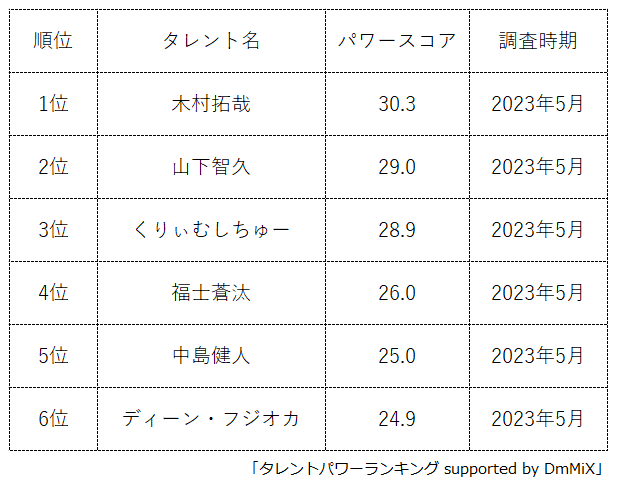 「タレントパワーランキング supported by DmMiX」である旨を明記