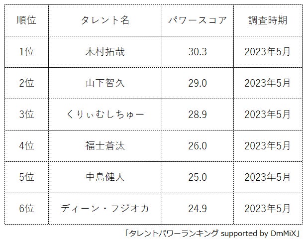 本ランキングは、2023年5月度に実施したタレント調査データ(一部過去実施データ)を利用し、タイトルに応じてランキング形式でまとめたものです。