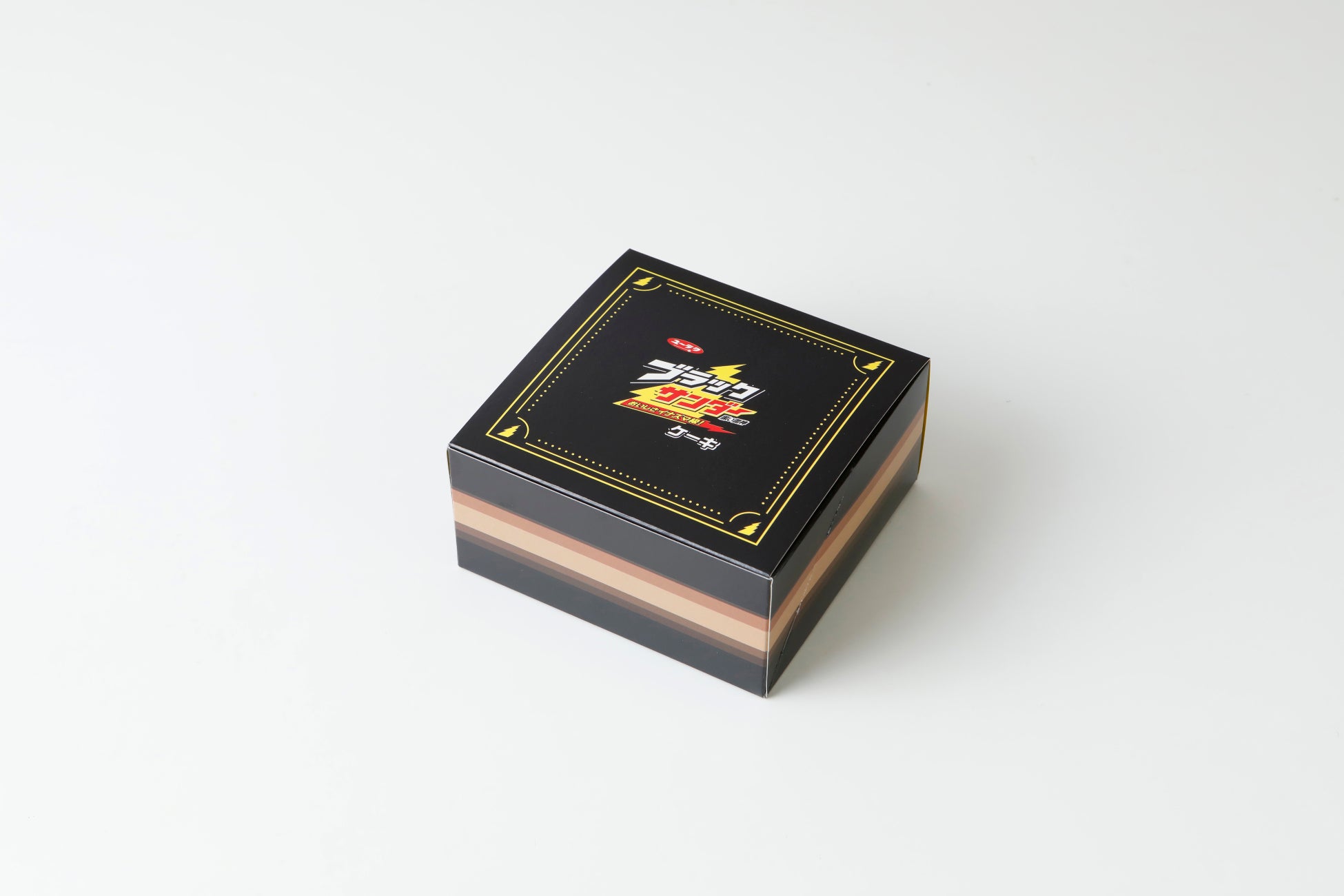 発売1周年を機に、ブラックサンダーのザクザク感はそのままに、グラサージュショコラのなめらかさを高めることで、食感のコントラストを一層楽しめるケーキへと進化しました。さらに、パッケージは従来の力強いロゴデザインを基調にしながら、天面にイナズマの縁取りを施し、側面にはケーキの6層を表現した帯をデザインすることで、ケーキならではの特別感を演出。味わいとデザインの両面から進化を遂げた「ブラックサンダーケーキ」としてリニューアルいたしました。