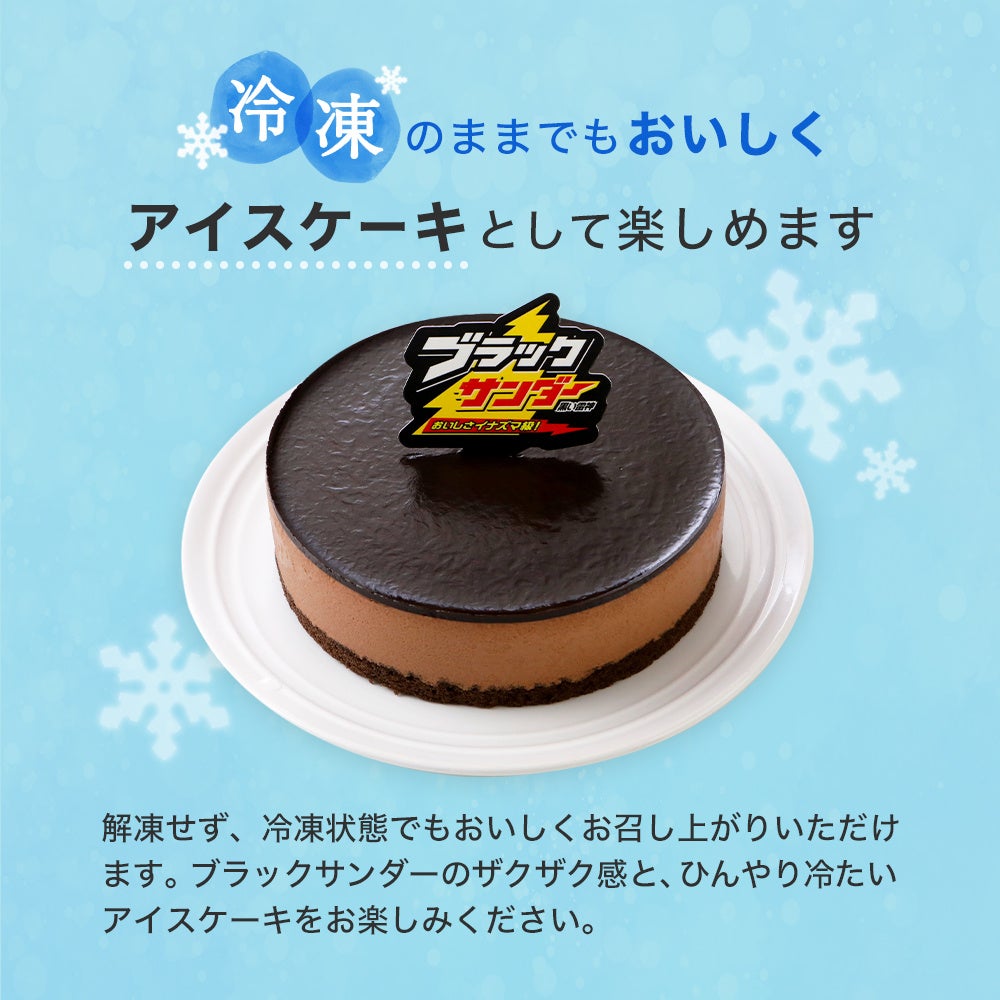 「ブラックサンダーケーキ」は解凍時間によって味わいが変わります。全解凍すると、ふわトロでなめらかなムースとザクザク感を楽しめ、冷凍状態ではひんやり冷たいアイスケーキとして味わえます。お好みに合わせてお楽しみください。
