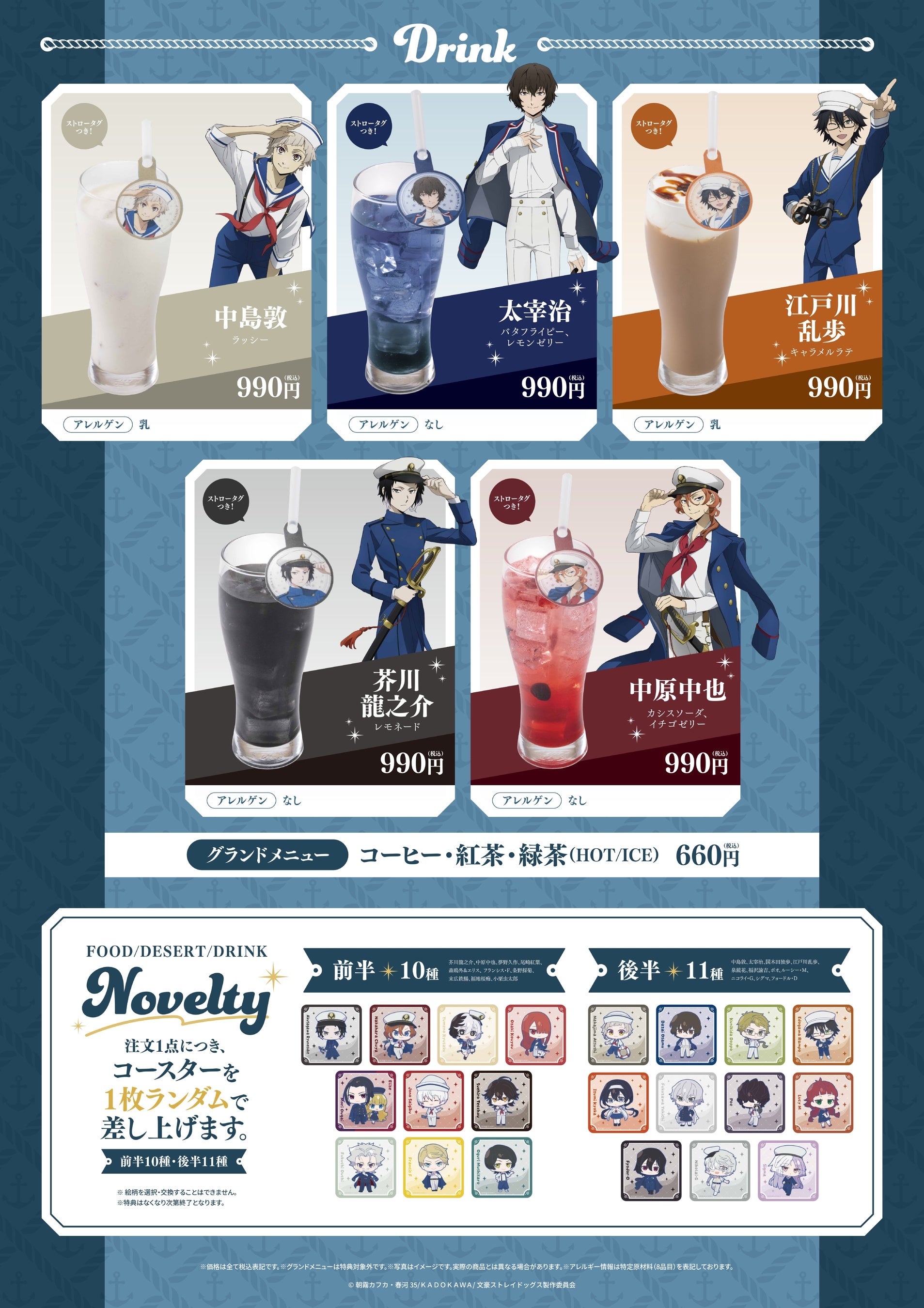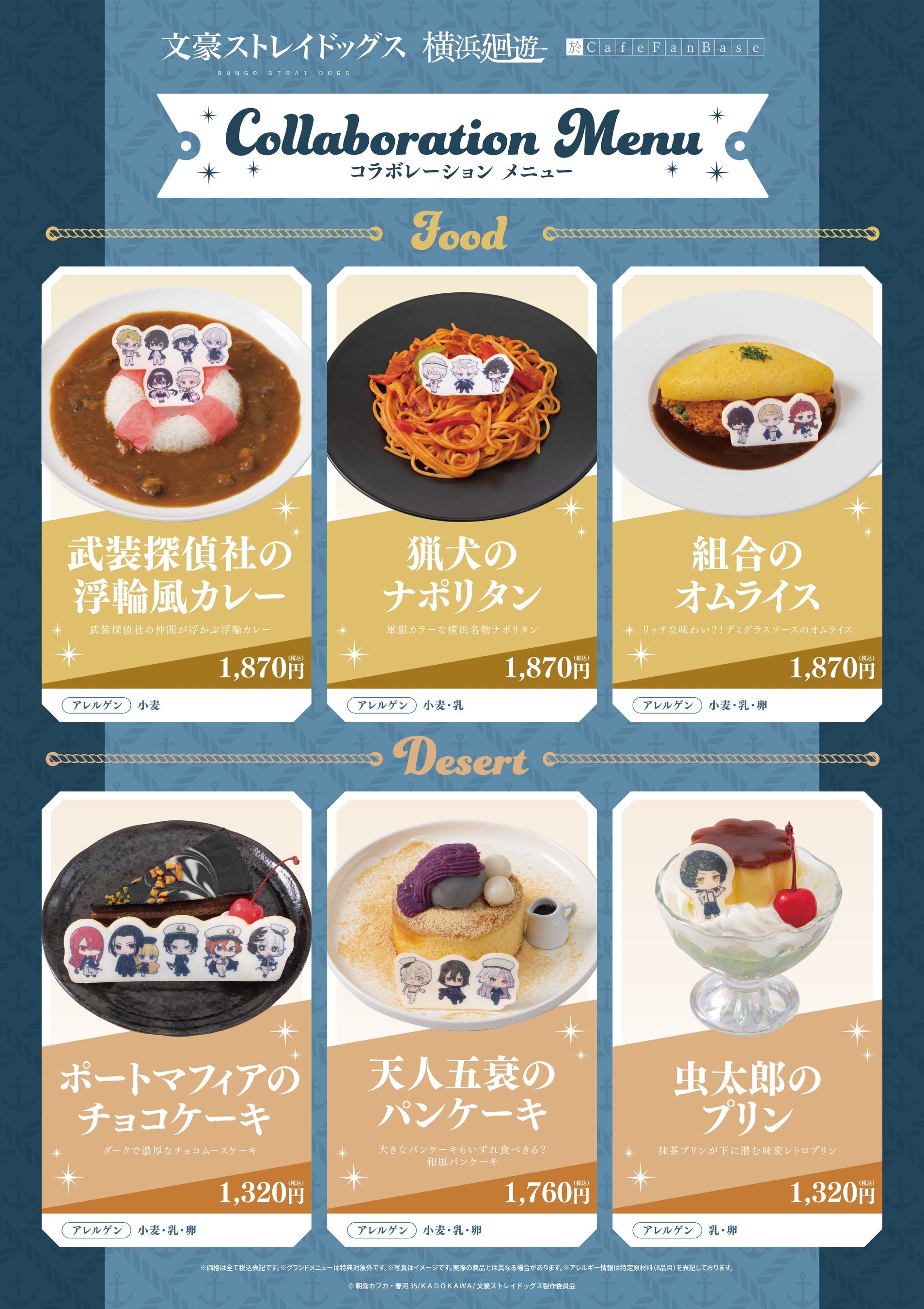 横浜発祥とされるメニューをベースに、「文豪ストレイドッグス×マリン×レトロ喫茶」をモチーフにしたメニューを展開いたします。