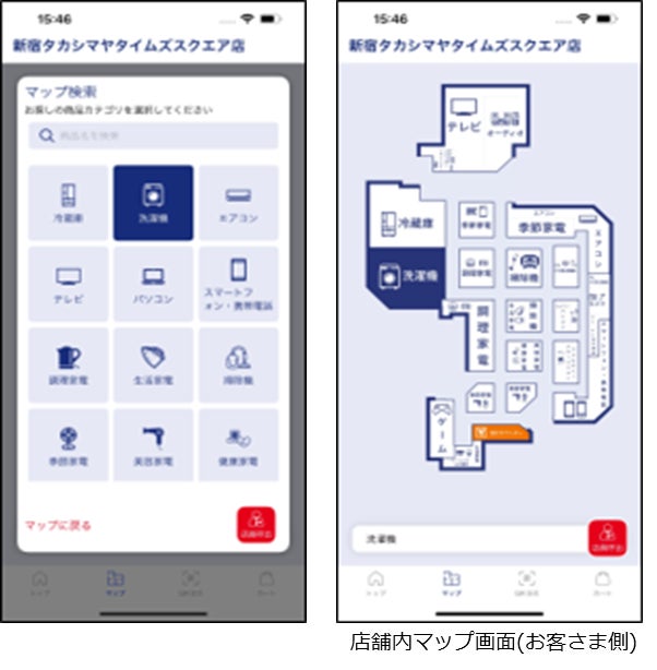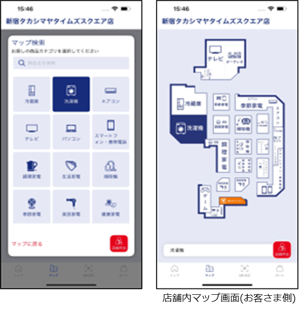 ノジマモバイルアプリ上に、来店いただいた店舗の店内マップが表示されます。お求めの商品がどのあたりにあるかを一目で把握可能です。
