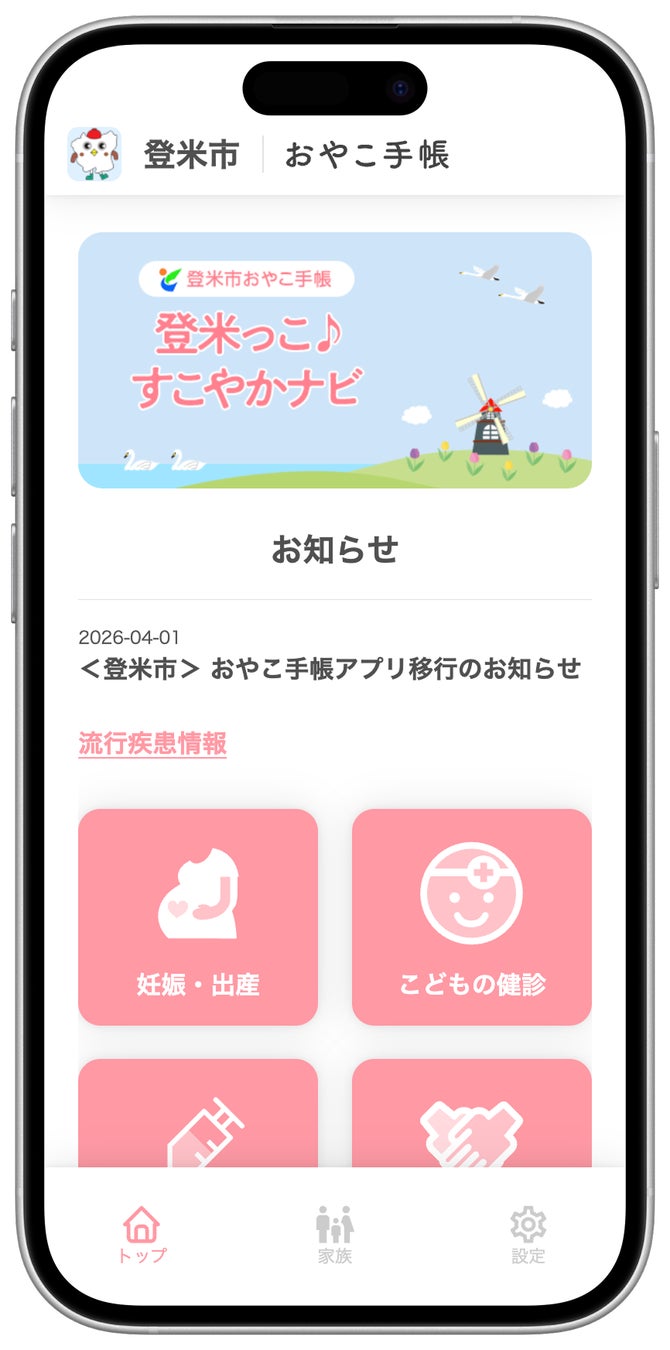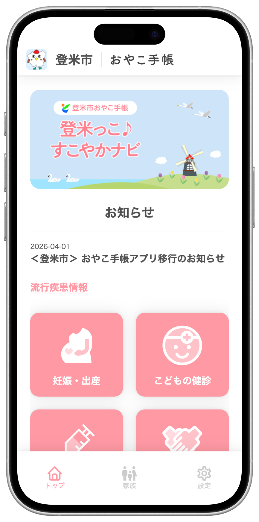 詳細は 旧アプリ「登米っこ♪すこやかナビ」TOPページに表示されているご案内をご確認ください。