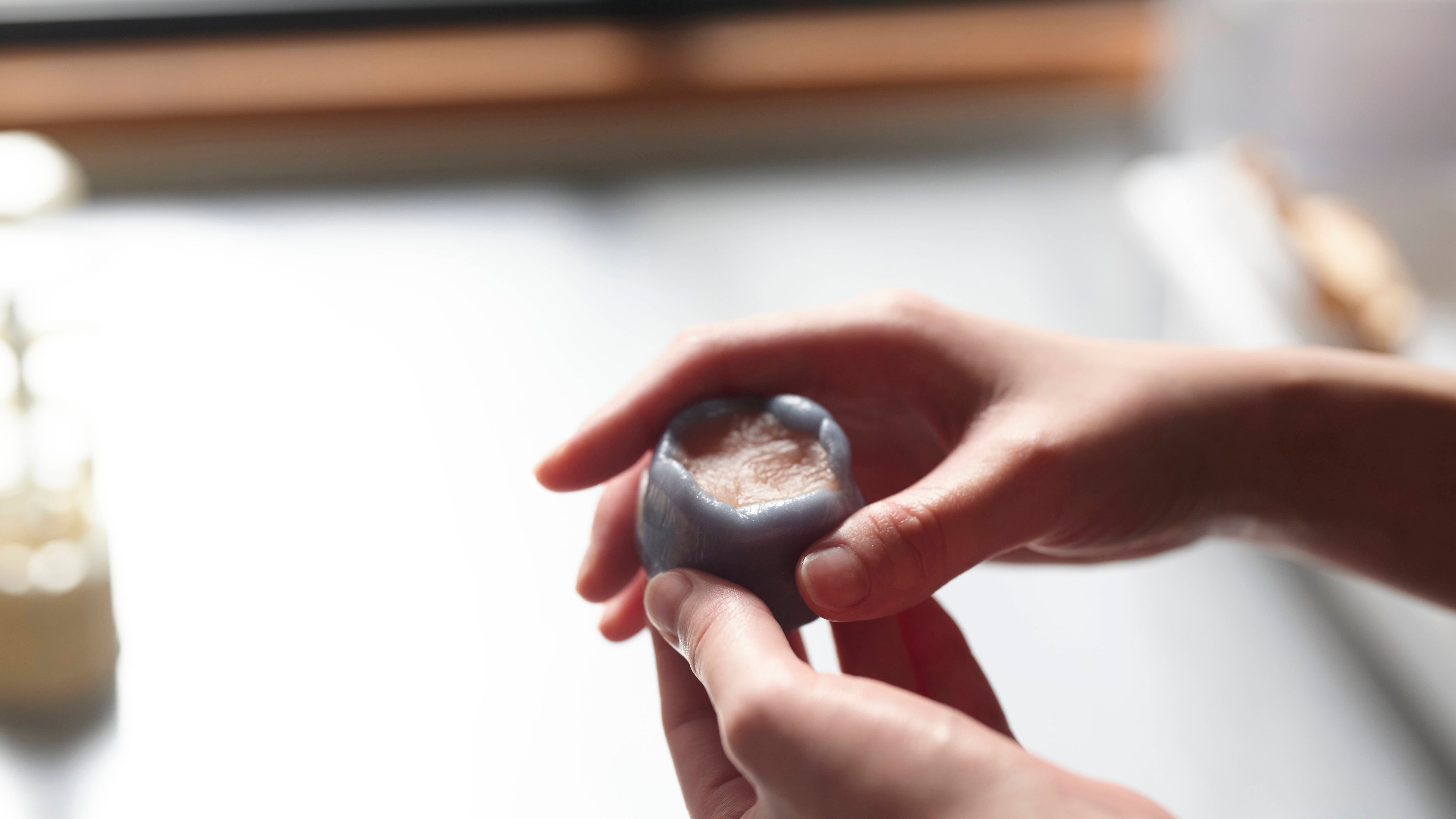 チョコレートを風味豊かな黒豆きな粉あんで包み込み、ココアをたっぷり練り込んだ生地で包みました。食べた瞬間にチョコレートがとろけ出します。