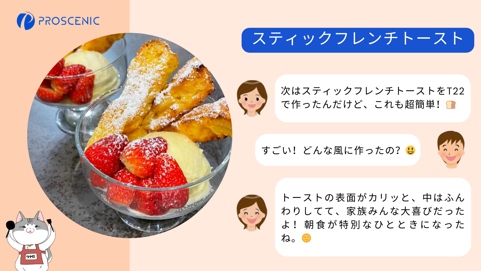 Proscenic T22ノンフライヤーは、革新的な料理体験とともに、Proscenicが提供するスマートで革新的な製品の一例です。500万以上のご家庭にサービスを提供し、300以上の知的財産権を取得し、世界中で数々の賞を受賞。Proscenicは常に革新と品質に注力し、お客様に新しい生活体験を提供し続けます。Proscenic T22ノンフライヤーとともに、スマートな料理体験をお楽しみください!