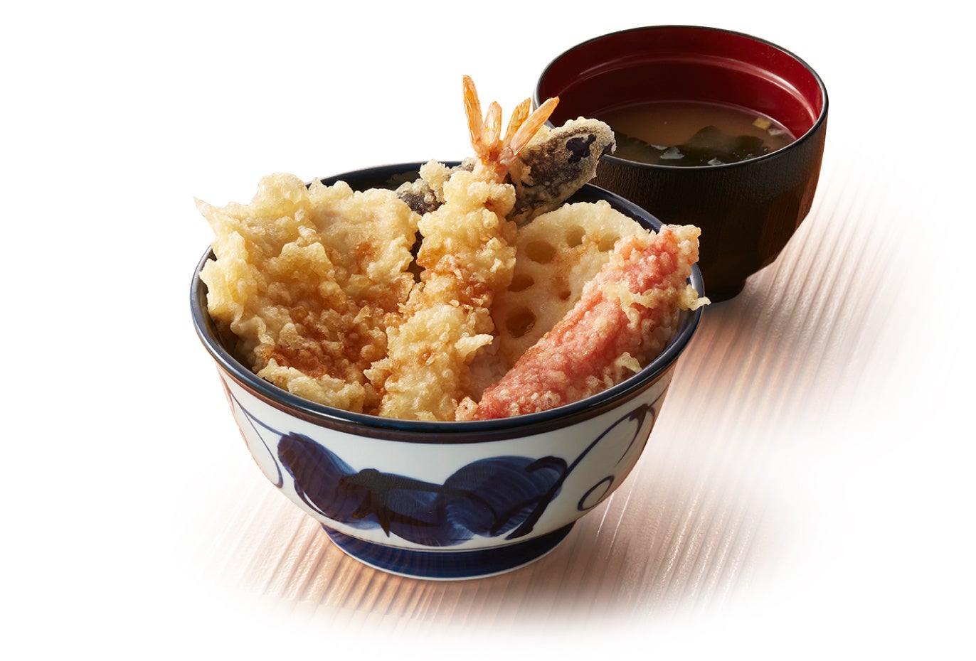 天丼てんやは、1989年9月、東京駅八重洲地下街に1号店を出店して以来、お求めやすい価格でありながら質の高い天丼・天ぷらを提供するチェーンを目指してまいりました。自社独自のオートフライヤーで温度と時間を管理し安定した品質の天ぷらを揚げ、天丼を構成する素材・粉・油・ご飯・たれまでこだわった手作り天丼を提供しております。