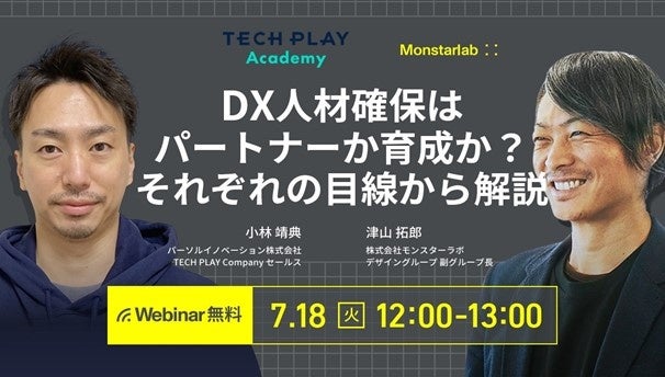 【TECH PLAY Academy × Monstarlab】ウェビナー『DX人材確保はパートナーか育成か?それぞれの目線から解説』を7月18日(火)12時より開催