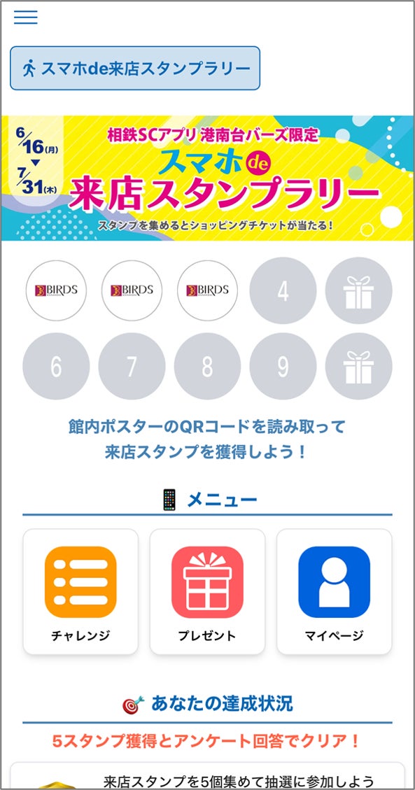 ■「港南台バーズ 相鉄SCアプリ スマホde来店スタンプラリー」概要