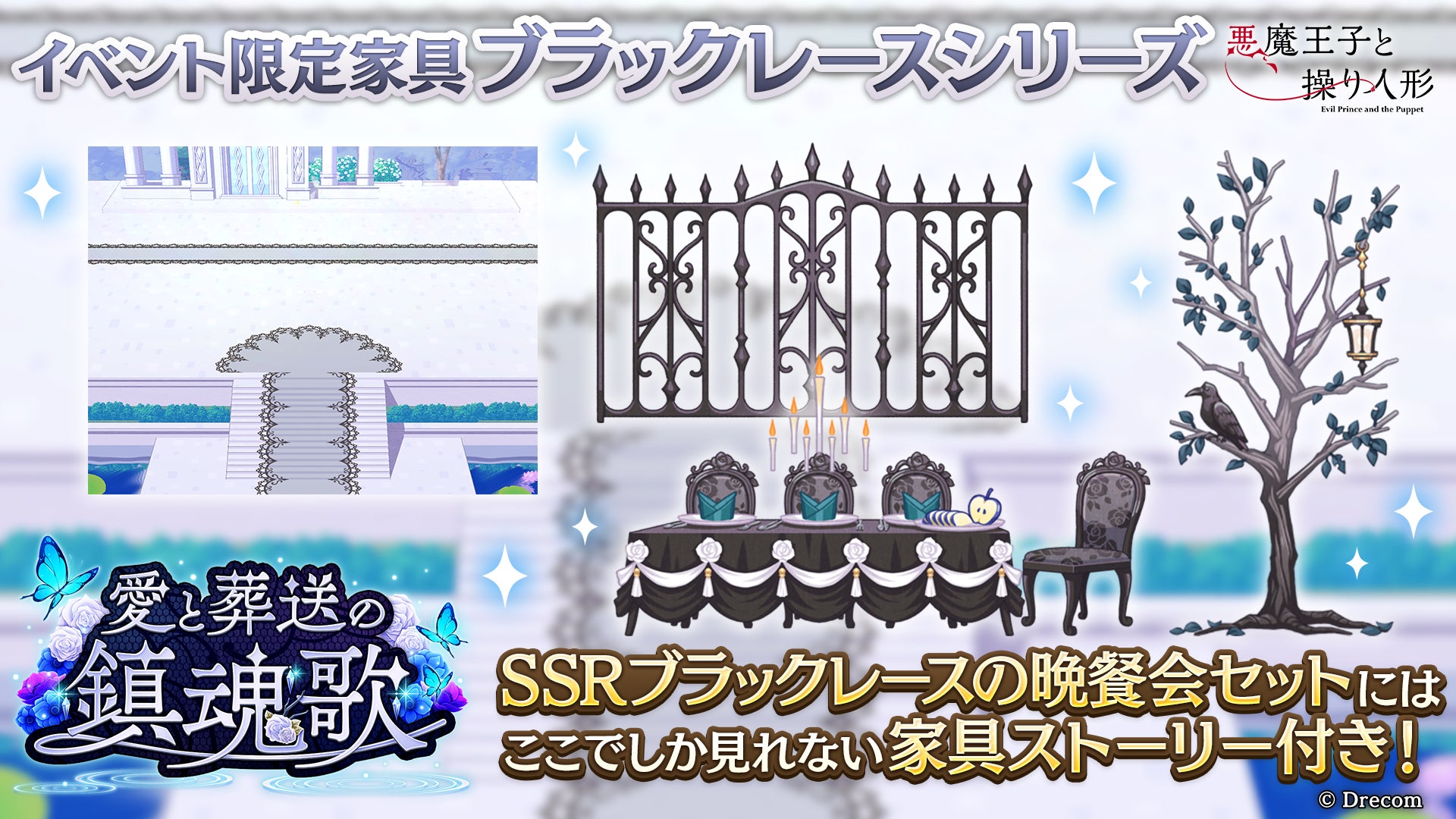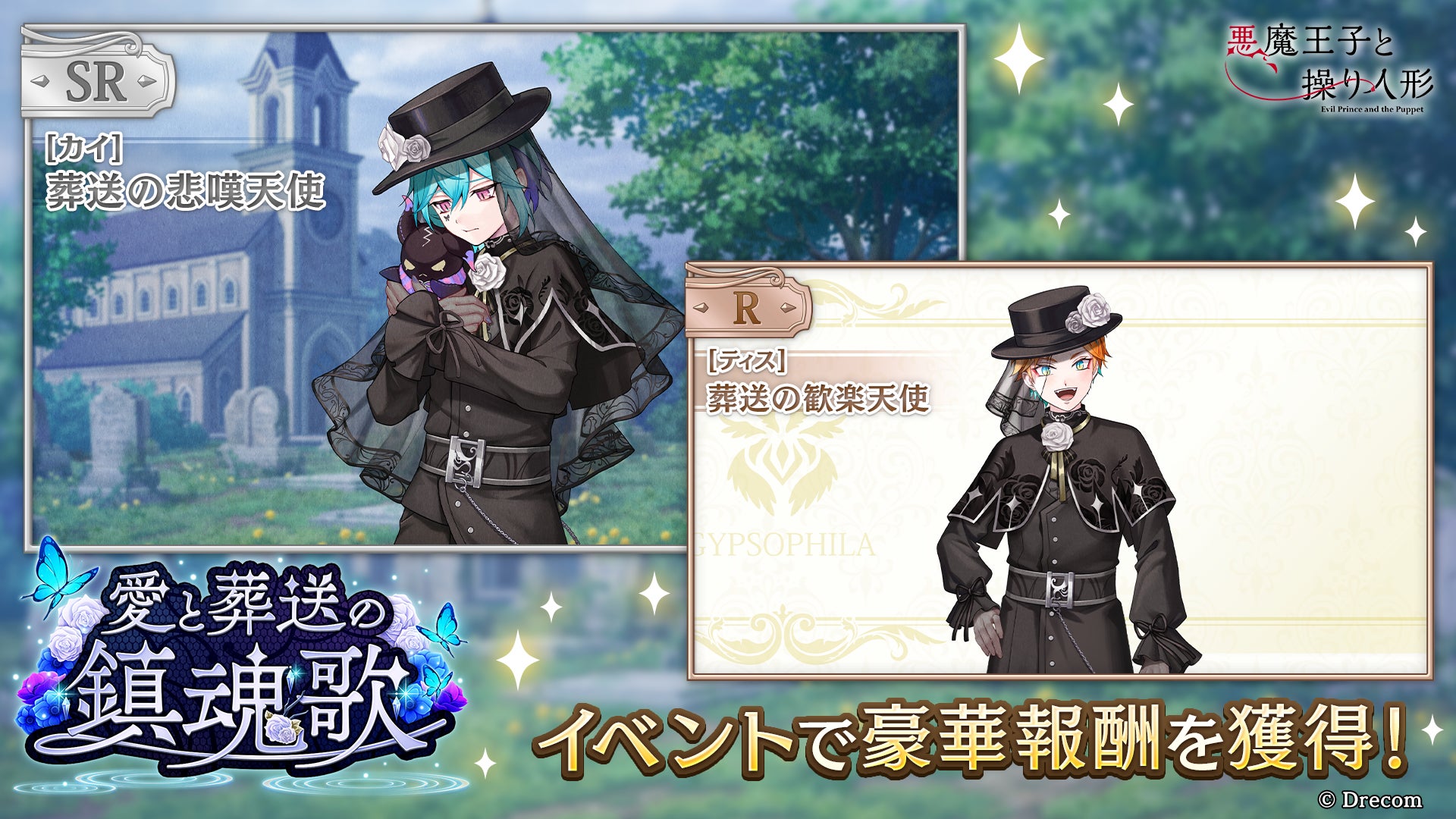 株式会社ドリコム(本社:東京都品川区、代表取締役社長:内藤裕紀、以下ドリコム)は、弔花者と呪いを癒すダークファンタジーADV『悪魔王子と操り人形(あくあや)』にて、期間限定のイベントガチャ「愛と葬送の鎮魂歌」を本日2024年8月30日(金)15時より開催しましたことをお知らせいたします。また、「愛と葬送の鎮魂歌」のゲーム内ストーリーイベントは、2024年9月1日(日)15時より開催いたします。
