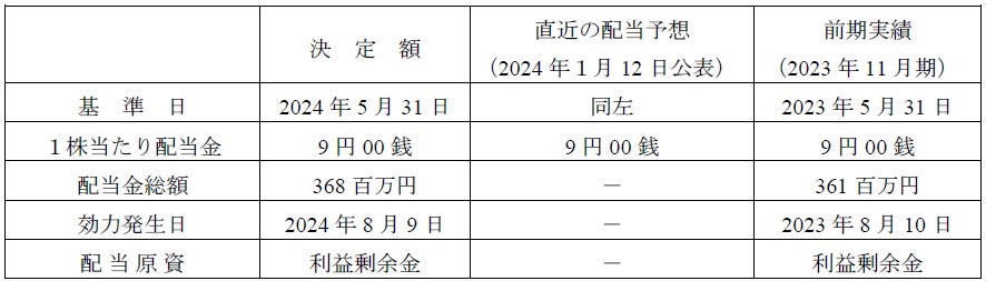 引き続きグループ中長期ビジョン(Astena 2030 “Diversify for Tomorrow.”)の目標達成に向けて各種施策に取り組んでいくことを勘案し、2024年11月期の中間配当は、当初予想通り1株当たり普通配当9円00銭とさせていただきます。なお2024年11月期の期末配当についても、1株当たり9 円00銭での実施を予定しております。