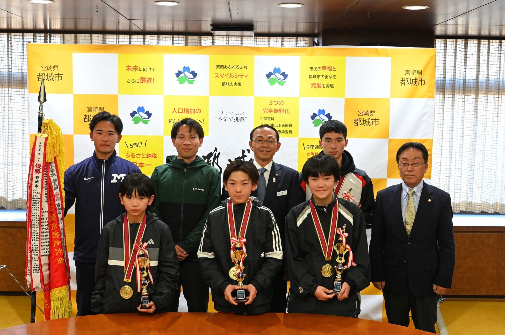 1月12日㈪に、ひなた宮崎県総合運動公園で開催された第16回宮崎県市町村対抗駅伝競走大会において、本市は市郡の部で優勝し、二連覇を達成しました。