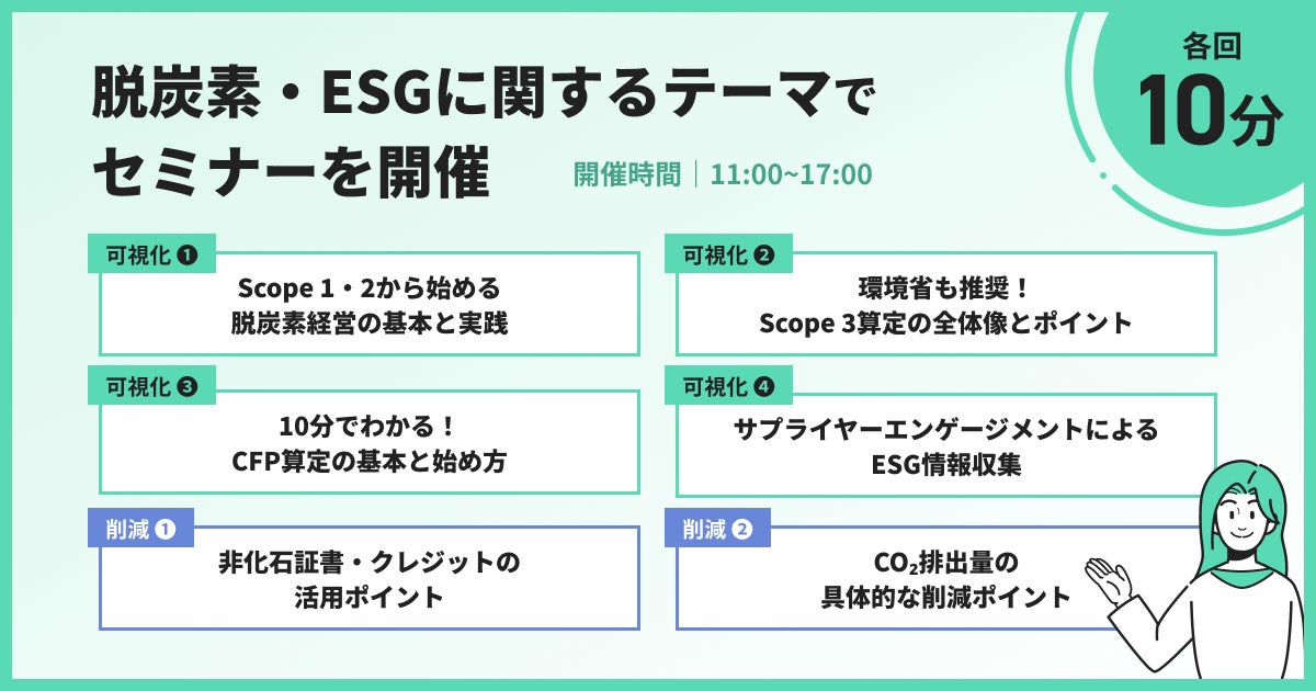 脱炭素・ESGに関するお役立ち情報を10分間のミニセミナーでお届けします。