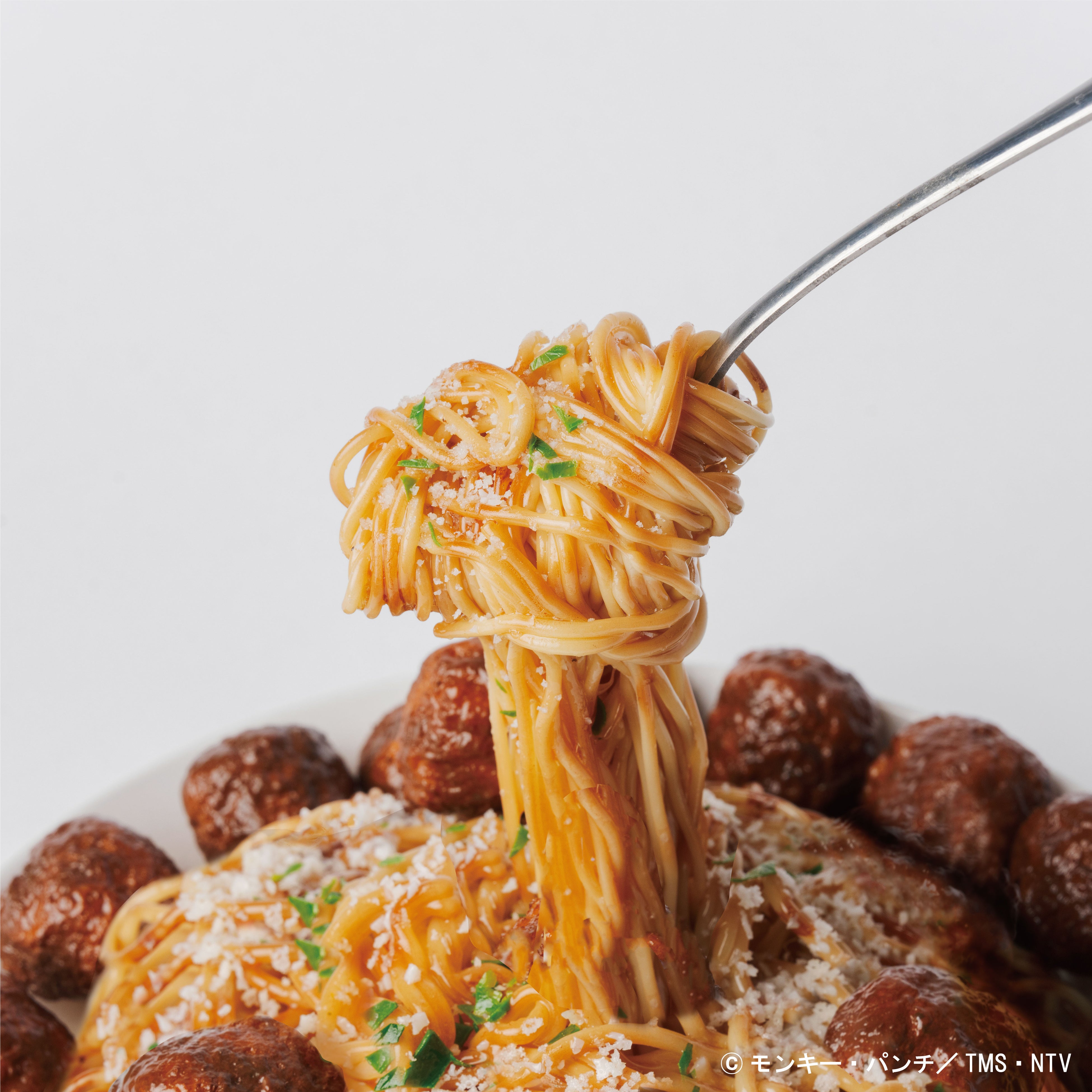 コラボレーションアイテムを8,800円(税込)以上購入された方の中から抽選で3名様に、作中に登場する「ミートボールスパゲッティ」を再現した食品サンプルをプレゼントします。キャンペーンの詳細および注意事項は、販売開始後に商品ページにてご確認ください。